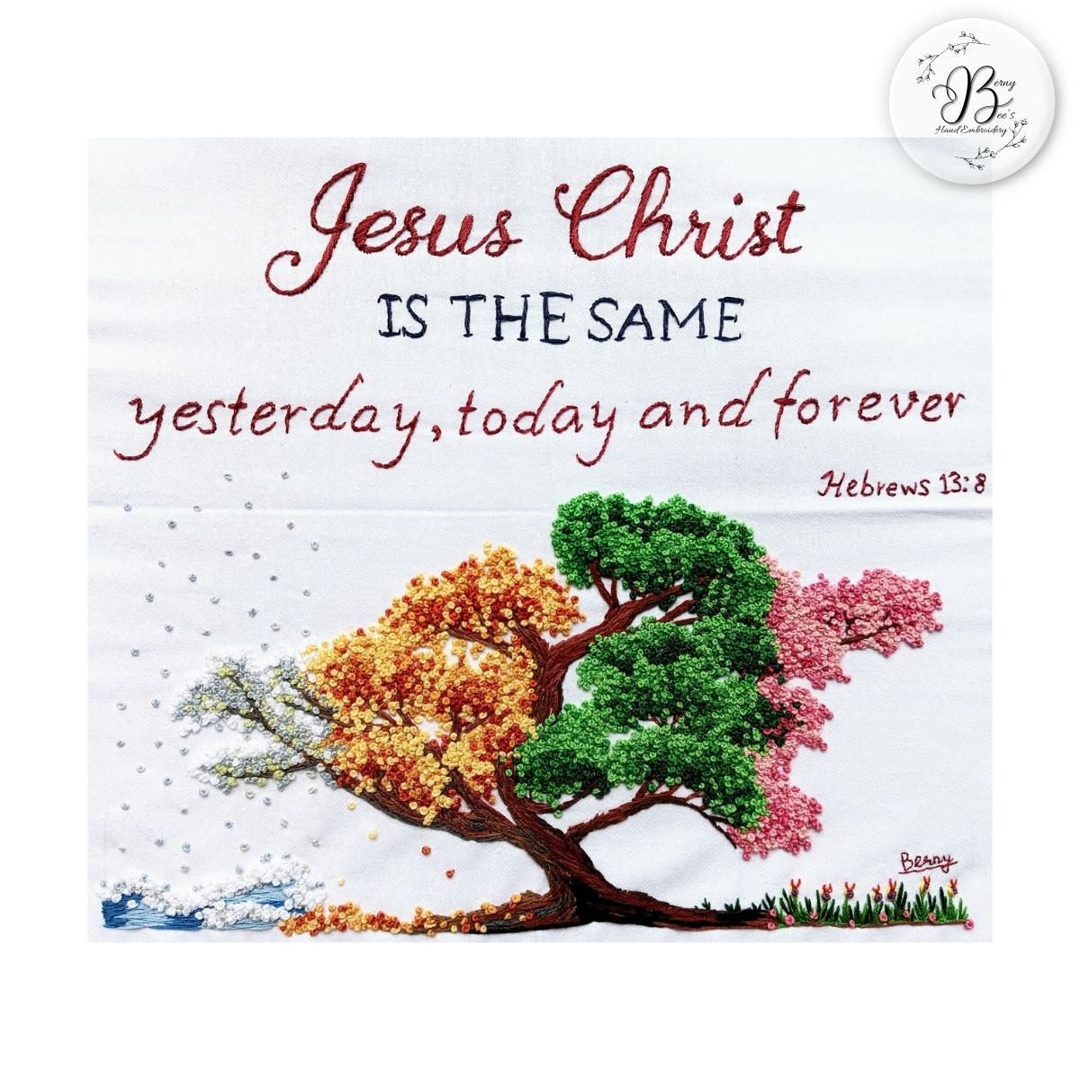 The verse “Jesus Christ is the same yesterday and today and forever.” Hebrews 13:8 speaks to the unchanging nature of God’s love and presence.