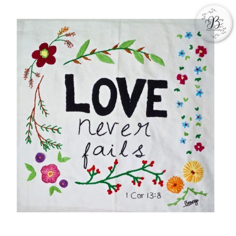 The verse “Love never fails.” 1 Corinthians 13:8 carries a timeless message of faith, hope, and enduring love.