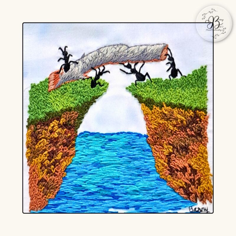 The Ant Series Piece 4: Crossing the Impossible Hand Embroidered Artwork